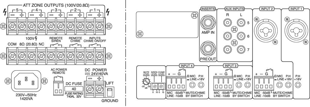 2 x 6,3-mm/XLR-Combo (Mic/Line),