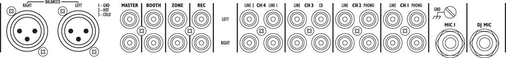 1 V/600 Ω (Zone), 1 x Cinch L/R