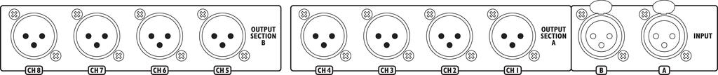 • 2 separate Eingänge • Betriebsarten wahlweise: • 1. Eingang A auf 4 Ausgänge, • Eingang B auf 4 Ausgänge • 2. Eingang A auf 8 Ausgänge