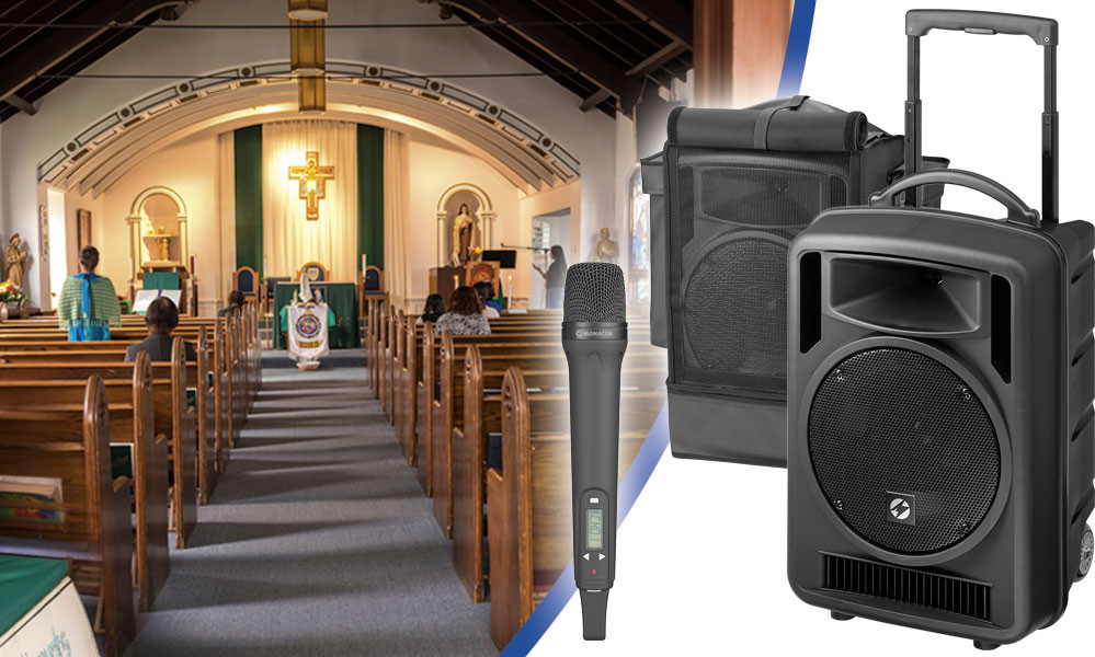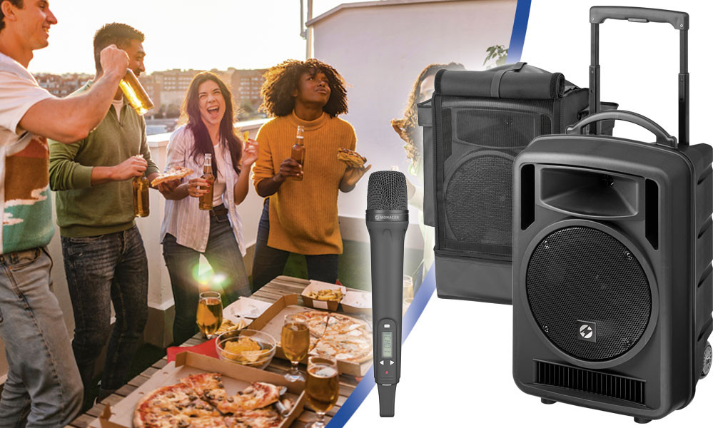 Audio-Bundle-TXA, Akkubetriebenes Beschallungssystem für den mobilen Einsatz. Komplettes Verstärkersystem mit Stativ und Sender.