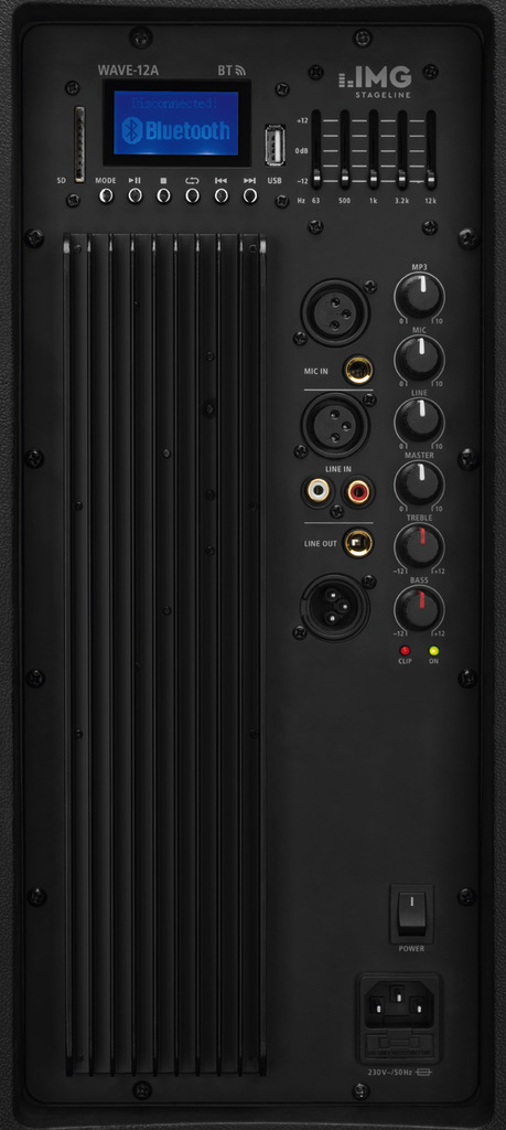 • Kompaktes 12/2-Fullrange-Bassreflex-System mit Kunststoffgehäuse • 30-cm-Bass (12") und 25-mm-Hochtonhorn (1") mit Schwingspule 34 mm (1 ⅜") • Integrierter MP3-Player mit USB/SD-Slot • Integrierter 5-Band-Equalizer zur Klangeinstellung • Bluetooth-Empfänger mit TWS (True Wireless Stereo) • IR-Fernbedienung • Symmetrischer Mic-Eingang über XLR-Buchse oder 6,3-mm-Klinkenbuchse • Line-Eingang über Cinch- oder XLR-Buchse • 2-fach-Klangregelung für Höhen und Bässe • MIX-OUT über XLR oder Klinke 6,3 mm • M8-Gewindeeinsätze zur Montageunterstützung • Stativhülse Herstellerinformation MONACOR INTERNATIONAL GmbH & Co. KG