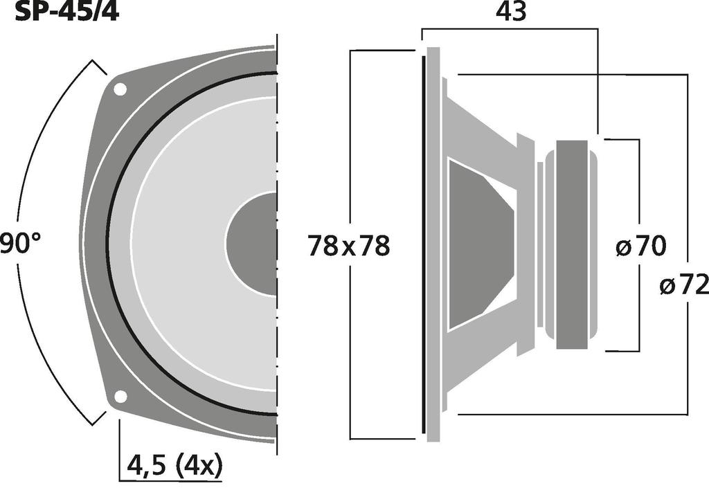 Tiefmitteltöner, 20 W, 8 Ω (/8) und 4 Ω (/4) Besonders geeignet für Mini-Boxen und Tonsäulen. Herstellerinformation MONACOR INTERNATIONAL GmbH & Co. KG