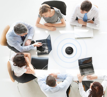 Die 6 Elementmikrofone unterstützen eine 360-Grad-Rundum-Audioaufnahme, um die Stimme von jedem Sitzplatz in einer Besprechung in bis zu 5-7 Metern Entfernung zu empfangen.