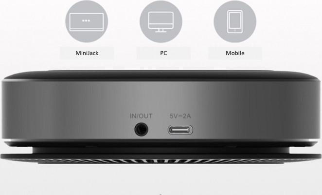 Der Vivolink-Konferenzlautsprecher VLSP20 ist ausschliesslich aus Metall und Gummi gefertigt, was ihm ein hochwertiges Gefühl und Aussehen verleiht, wenn er auf dem Konferenztisch steht.