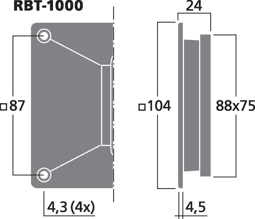 • Magnetostat mit Schallführung (Waveguide) • Hochtonsystem aus dem L-RAY/1000 • Brillante, feinzeichnende Hochtonwiedergabe • Über 12 dB Filter ab 3000 Hz (Hi-Fi) bzw. 4000 Hz (PA) einsetzbar • Hornvorsatz aus Aluminiumguss, Neodym-Magnet • Durch quadratische Frontplatte vertikal und horizontal einbaubar • Der Einbau in ein geschlossenes, luftdichtes Gehäuse wird empfohlen Herstellerinformation MONACOR INTERNATIONAL GmbH & Co. KG