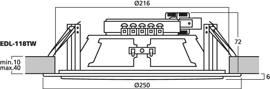• 100-V-Übertragungstechnik • 2-Wege-Koaxiallautsprecher 20 cm (8") • Metallgehäuse mit Abdeckung der Korböffnungen • Leistungsabgriffe 15/10/6/3 W • Schnellmontageeinrichtung mit Federklemmen • Anschluss über Klemmterminal • Für Deckenstärken 10-40 mm Herstellerinformation MONACOR INTERNATIONAL GmbH & Co. KG