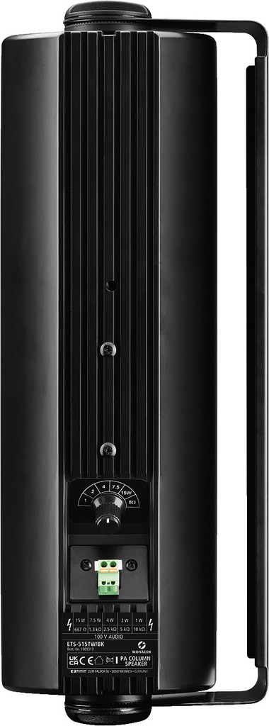 • 100-V-Übertragungstechnik oder 8-Ω-Betrieb • 2-Wege-Ausführung (mit zusätzlichem, integriertem Hochtöner für einen deutlich verbesserten Klang) • Integrierte Frequenzweiche • 6-stufiger Leistungsumschalter mit 8-Ω-Umschaltung • 2 x 6-mm-Gewindebuchse • Kunststoffgehäuse und Gewebe-Schutzabdeckung • Durchgehender Montagewinkel im Lieferumfang • Klemmleisten-Anschluss Herstellerinformation MONACOR INTERNATIONAL GmbH & Co. KG