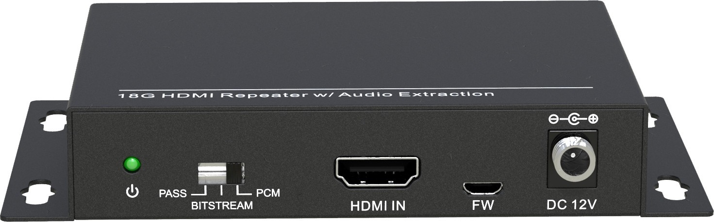 Separater Ton vom HDMI 18G HDMI-Repeater + Audioausgang über RCA, symmetrisches Audio und Koax.