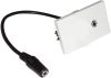 Weisse FLF-Montageplatte, bestückt mit einer silberbeschichteten 3,5 mm Stereo Mini-Klinkenbuchse und rückseitiger Kabelpeitsche von ca. 10 cm.