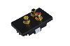 FLF Montageplatte schwarz, 63 x 38 mm, mit Metallklammern, bestückt mit 3 x Cinch (schwarz/rot/gelb) vergoldet mit Lötanschlüssen