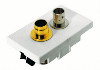 FLF Montageplatte weiss, 63 x 38 mm, mit Metallklammern bestückt mit 1 x BNC-Durchführung und 1 x Y/C (S-VHS) Durchführung, Kontakte vergoldet