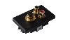 FLF Montageplatte schwarz, 63 x 38 mm mitMetallklammer bestückt mit 2 x Cinch (schwarz/rot), vergoldet mit Lötanschlüssen und 1 x Y/C (S-VHS)Durchführung, Kontakte vergoldet.