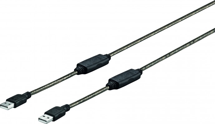 USB 2.0 A male - USB 2.0 A male USB cable A/A - Built - in amplifier, Diameter of amp. 20mm Double shieldings in cable