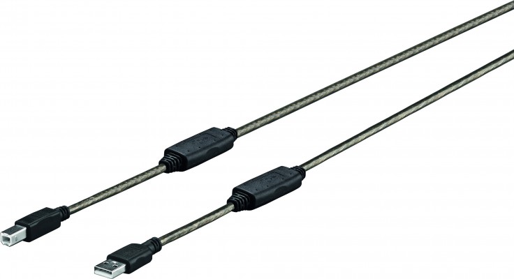 USB 2.0 cable A - B M - M 15 M Diameter of amp. 20mm Double shieldings in cable. USB 2.0 A male - USB 2.0 B male.