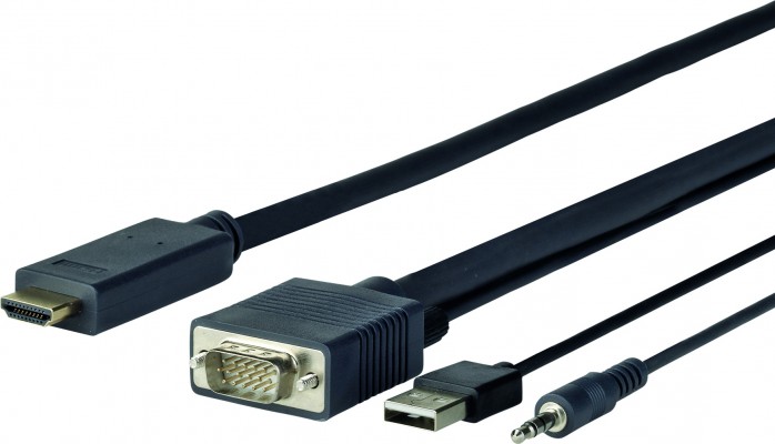 Adapter Cables VGA VGA + Audio + USB to HDMI cable Adapter cable 3.5mm m 3p + VGA male to HDMI male Ideal for environment where old VGA equipment should be connected to HDMI installation EDID function upscale to match screen resolution Pro VGA + Audio to HDMI 2M