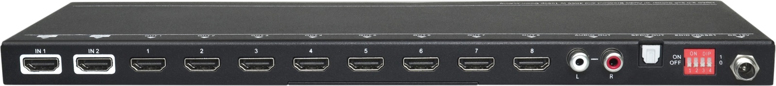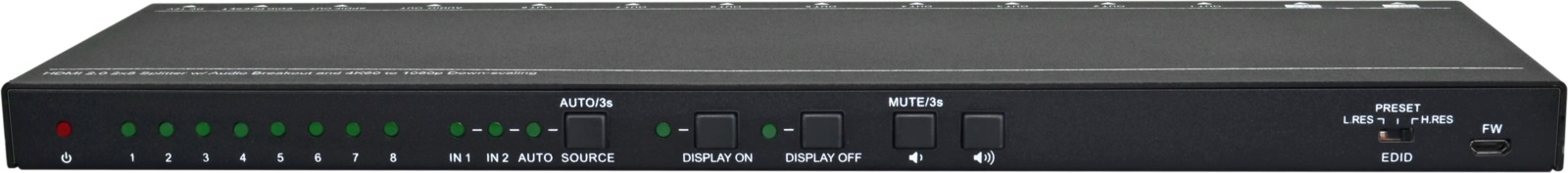 2 source selection 8 out HDMI 2.0 HDCP 2.2, volume control and turn on/off display