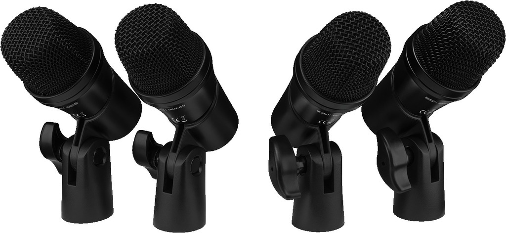 bestehend aus einem dynamischen Bassdrum-Mikrofon, vier dynamischen Snare-/Tomtom-Mikrofonen und zwei Kondensator-Overhead-Mikrofonen