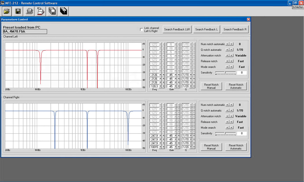 • Wahlweise ständige Signalüberwachung (Auto Notch) oder manuelles Setzen der benötigten Filter (Manual Notch)