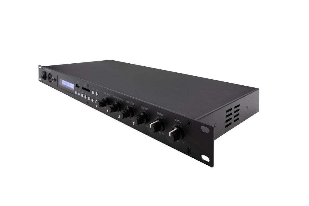 • Bluetooth-Empfänger für den kabellosen Anschluss von Notebooks, Smartphones oder Tablet-PCs • USB-Speichermedien direkt anschließbar • Für SD/MMC-Cards bis zu 64 GB (FAT16/FAT32), nicht im Lieferumfang • Regelbarer Mikrofon- und Aux-Eingang auf der Frontseite • Regelbarer Stereo-Line-Eingang • Einschleifmöglichkeit für z. B. Effektgeräte, Equalizer, Feedback-Controller • 2-fach-Klangreglung • Regelbarer Master-Ausgang • 482-mm-Rackeinbau (19"), 1 HE Herstellerinformation MONACOR INTERNATIONAL GmbH & Co. KG