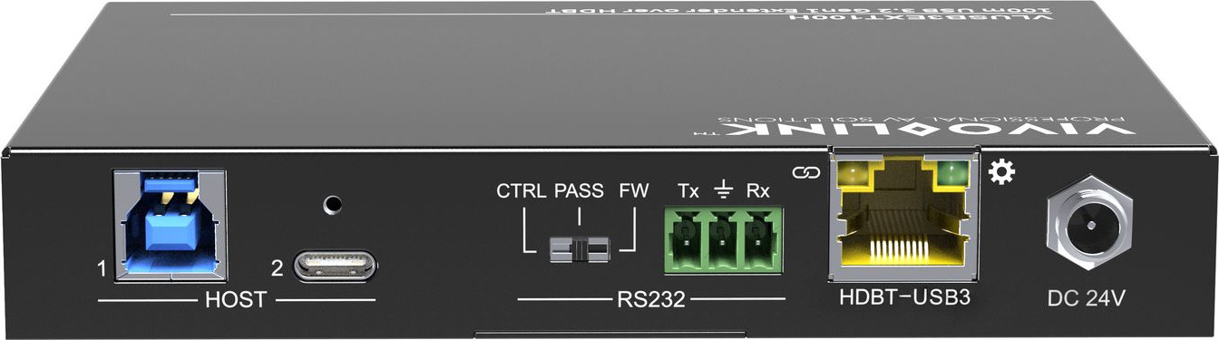 Vivolink 100m USB 3.2 Gen1 Extender over HDBT Host Der VLUSB3EXT100H ist ein Host, an den bis zu 4 USB-Geräte angeschlossen werden können,