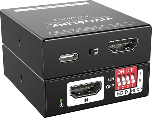 Der VLHDMICLT2 ist ein sehr nützlicher HDMI EDID-Manager. Er kann verwendet werden, um Signalauflösungen und Toneinstellungen von Signalquellen zu steuern. Die Einstellungen können einfach über DIP-Schalter an der Vorderseite konfiguriert werden. Die HDCP-Steuerung über DIP-Schalter kann die Kompatibilität verbessern, wenn mehrere Produkte angeschlossen sind.